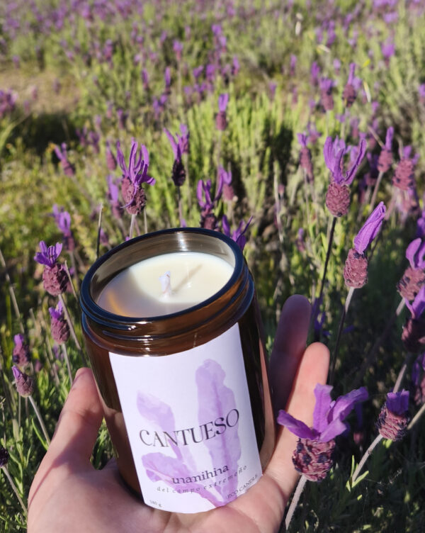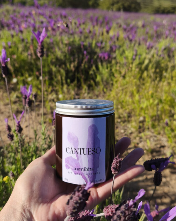 La vela contiene un alto porcentaje de esencia, permitiendo impregnar estancias con su olor al poco tiempo de encenderse y alargando la duración del contenido para llevarte a casa unamihina del campo extremeño.